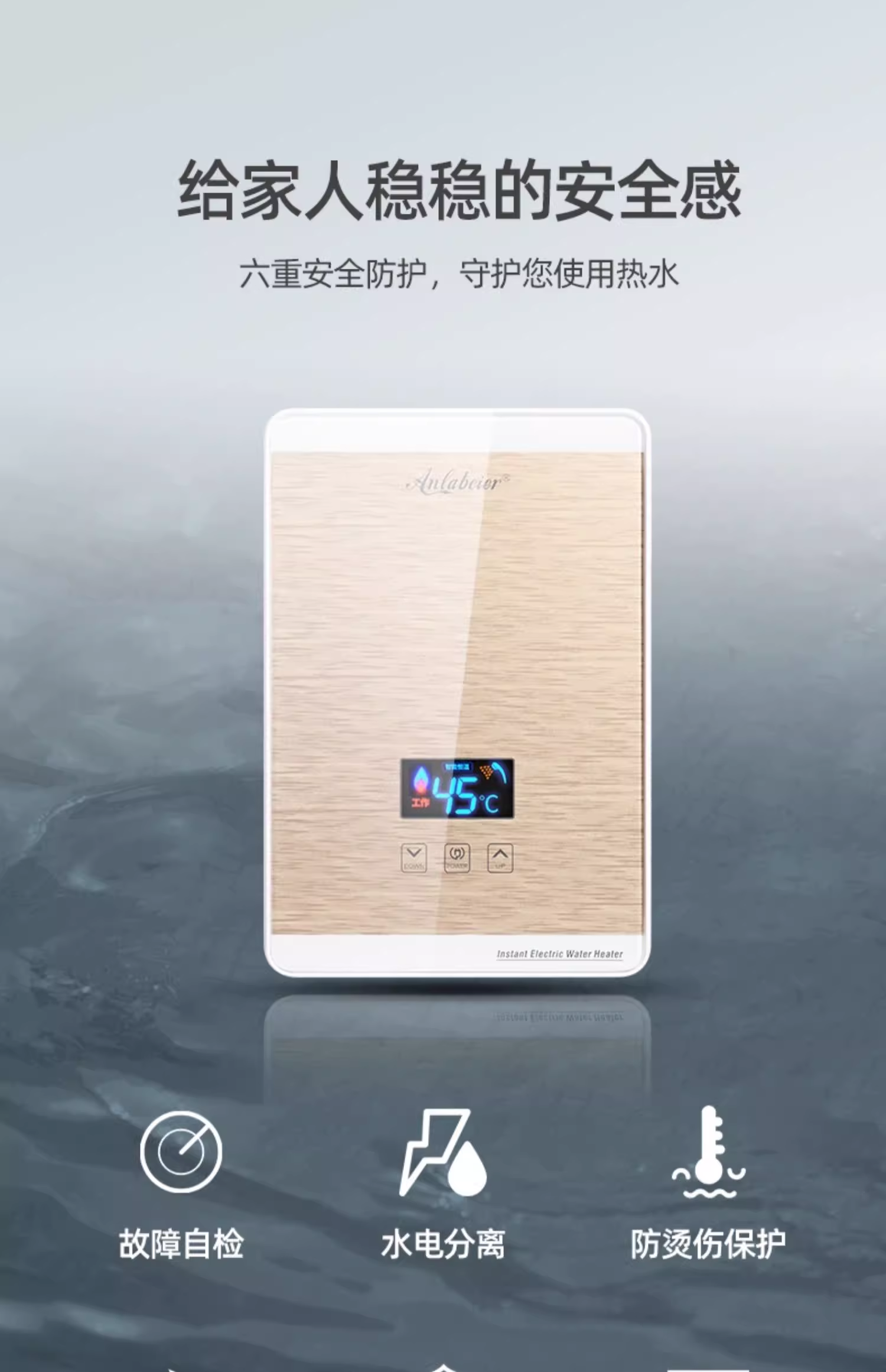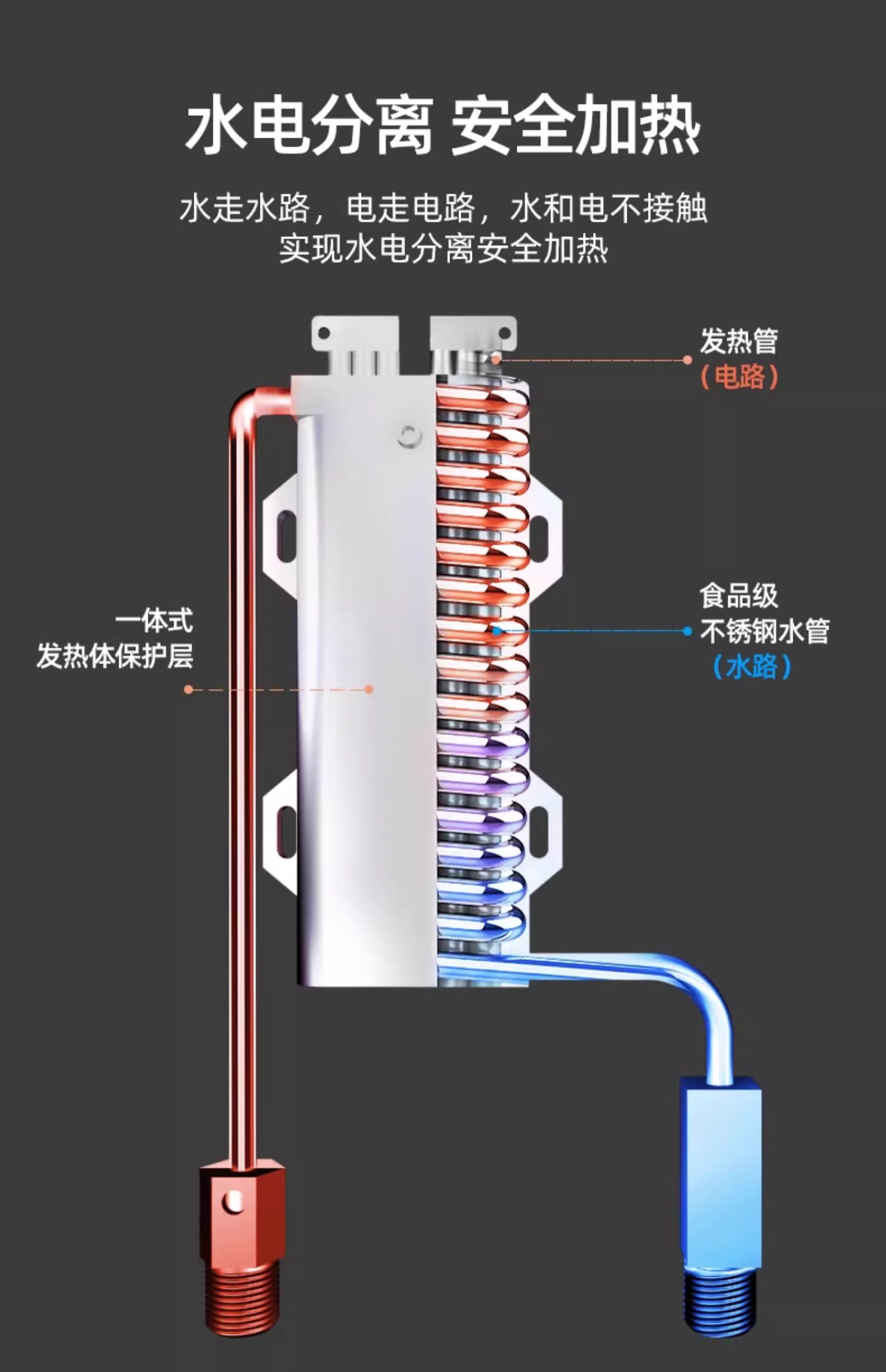 第三,安全,才是真正的暖心! 它使用的是铸铝发热体,水电分离的设计,从根源上防止漏电保障安全。再加上防干烧、超温、内置防漏电元件等多重防护,它就像一个贴心的保镖,时刻守护着我家的用水安全,特别安心。