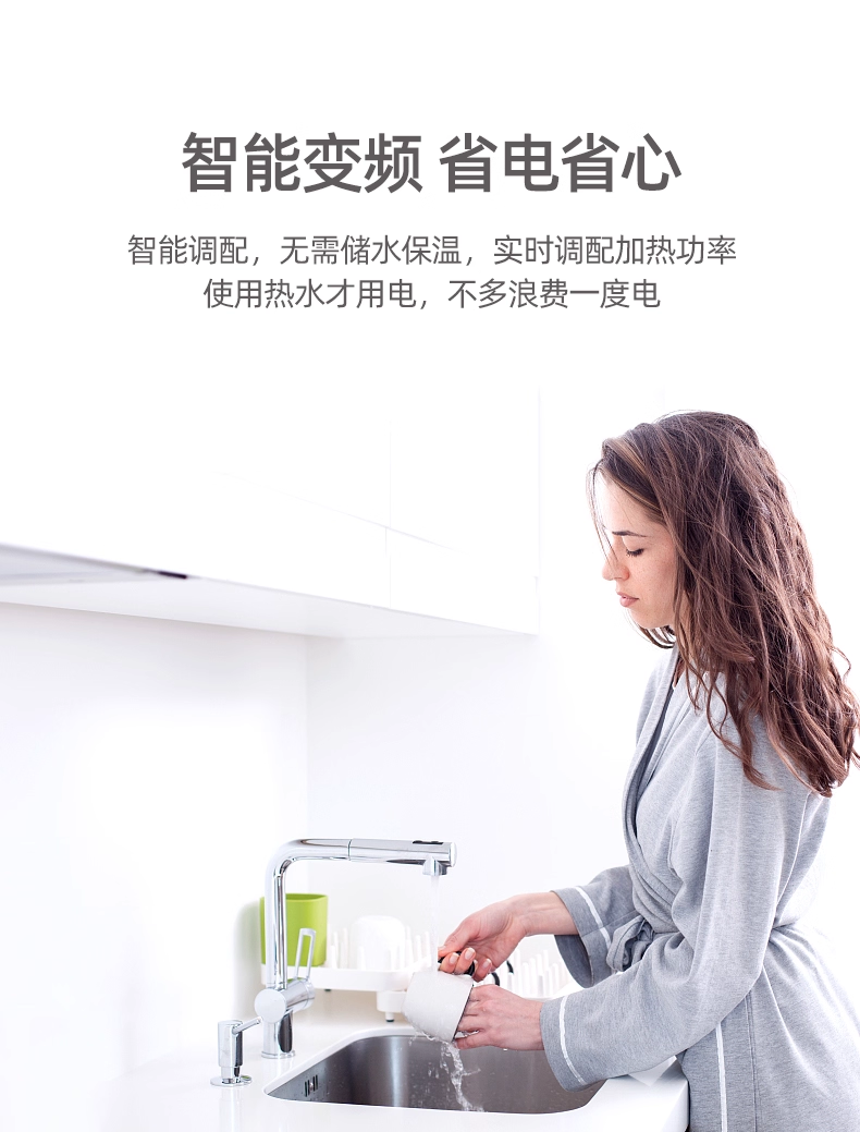 第二,开机用水瞬间告别“冰火两重天”! 它用的是变频恒温技术,打开就是舒适热水,水温稳稳的。无论是洗菜、洗手还是洗脸,再也不用被忽冷忽热的水温吓一跳了。
