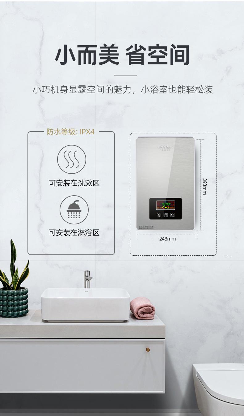 这是它最大的优势!无需像储水式那样长期保温。洗澡前打开,洗完澡关闭,减少不必要的待机能耗,省下的都是真金白银。