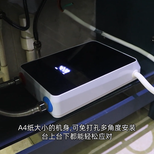 2、智能触摸大屏,一键开机,用户自定义温度,打开水龙头秒出热水、冷热两用。无水箱设计,无需储水、即开即用,24H源源不断热水供应。
