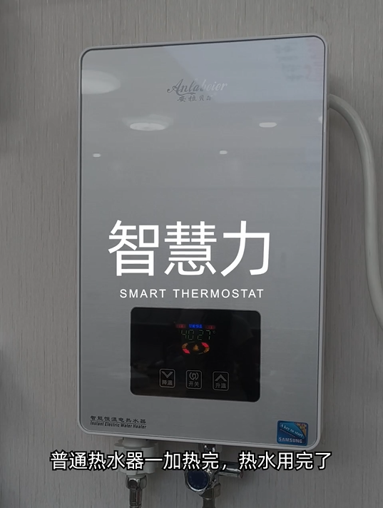 第二步,看“智慧力”:普通热水器只会傻加热,一次加热完的水量万一不够了,就会重新加热,导致后面洗着洗着就会忽冷忽热的。而安拉贝尔有智能变频恒温系统,能精准控制出水温度,让孩子享受全程舒适沐浴。操作起来也很简单,5kw~8kw多档功率可调,一年四季都适用。智能省电设计,一个月下来省下的钱能给孩子买不少零食。