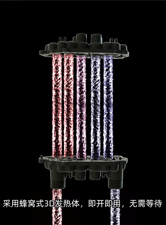 第一步,先看“加热力”:冬天孩子洗澡怕冷,原因可能就藏在热水器里。热水器升温不够快,洗澡过程容易着凉。所以选择一台“秒出热水”的热水器才是正解。就像这台安拉贝尔即热式电热水器,采用蜂窝式3D发热体,即开即用,无需等待。用多少水耗多少电,守护孩子健康的同时更加节能省电。