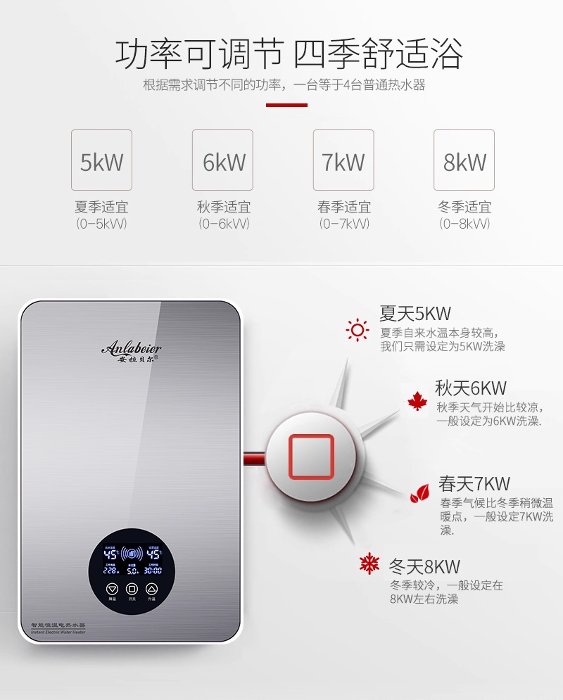 2.省水省电,按需供热:不用像储水式那样,为了备用而反复加热一整箱水。即热式只有在您用水时才工作,用多少水就加热多少,避免了“保温热损耗”,对于用水不连续的家庭来说,长期使用更节能。
