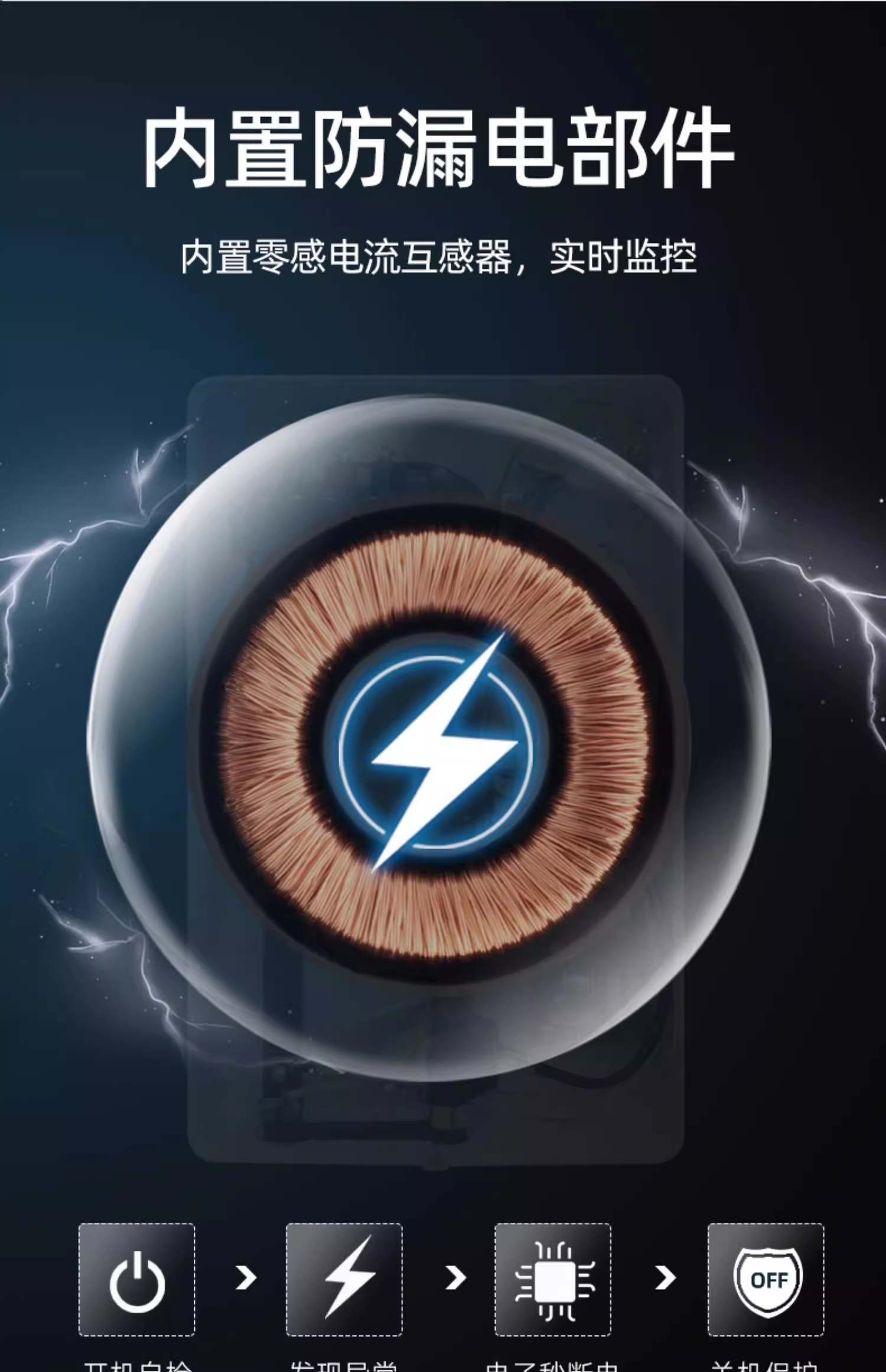 - 主动防御:内置灵敏的电子漏电保护装置(毫安级检测),能在人体毫无知觉前切断电源。