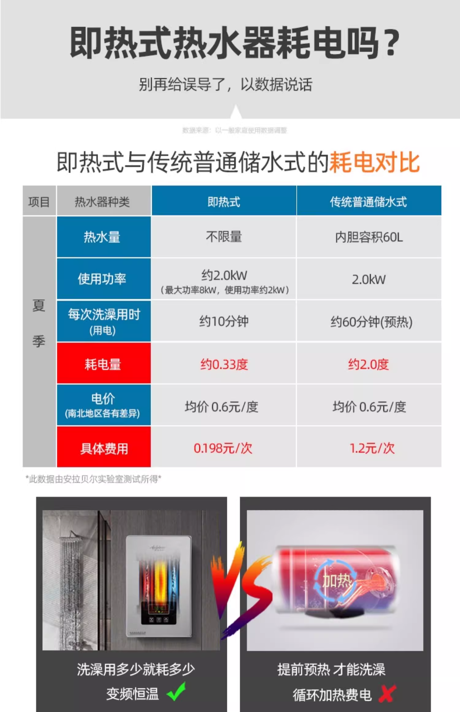 - 即热式像一台精准的点火器:只有在你打开龙头的那一刻才开始全速工作,即用即热,用多少烧多少,关闭即归零,几乎没有待机损耗。