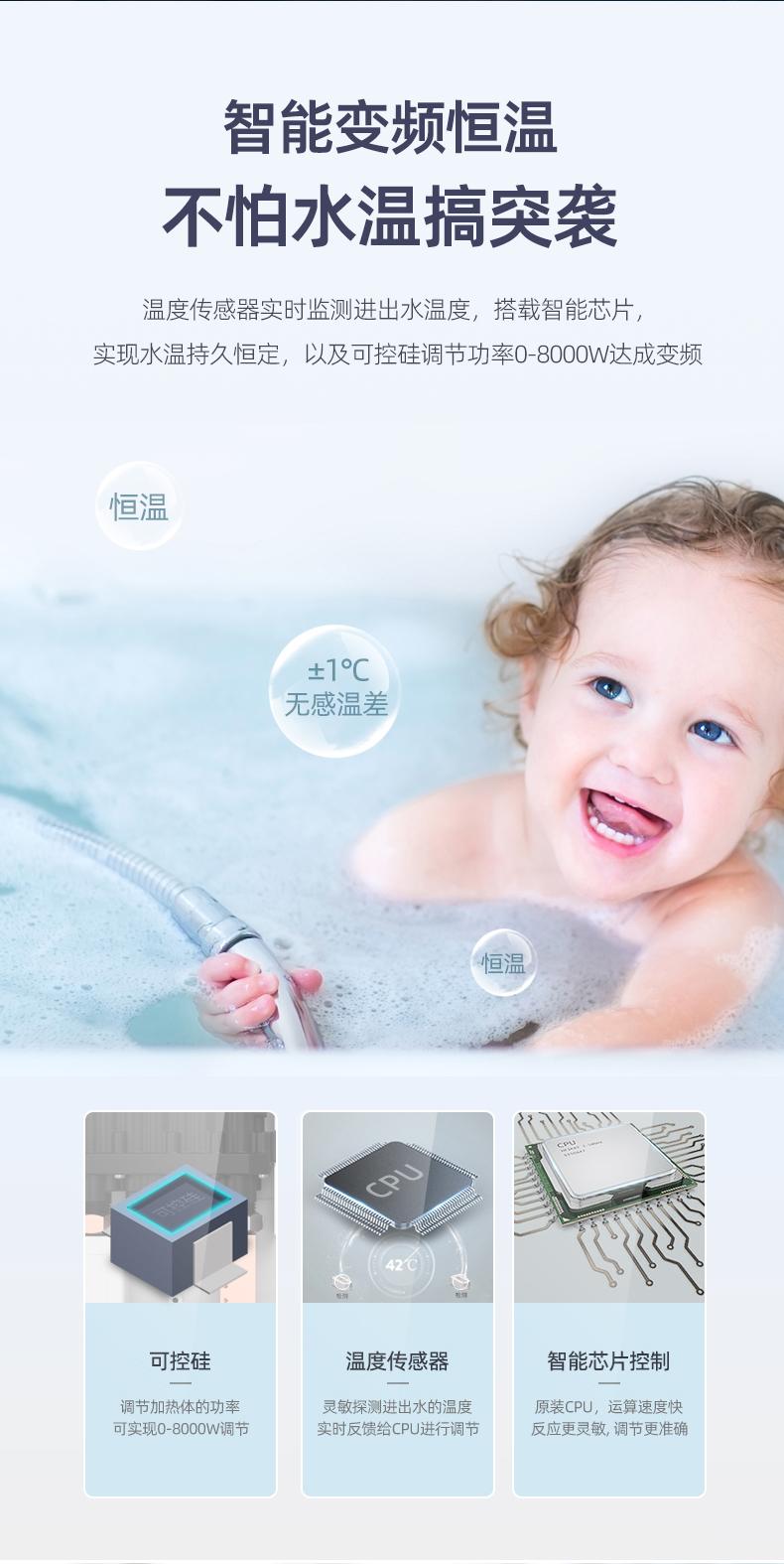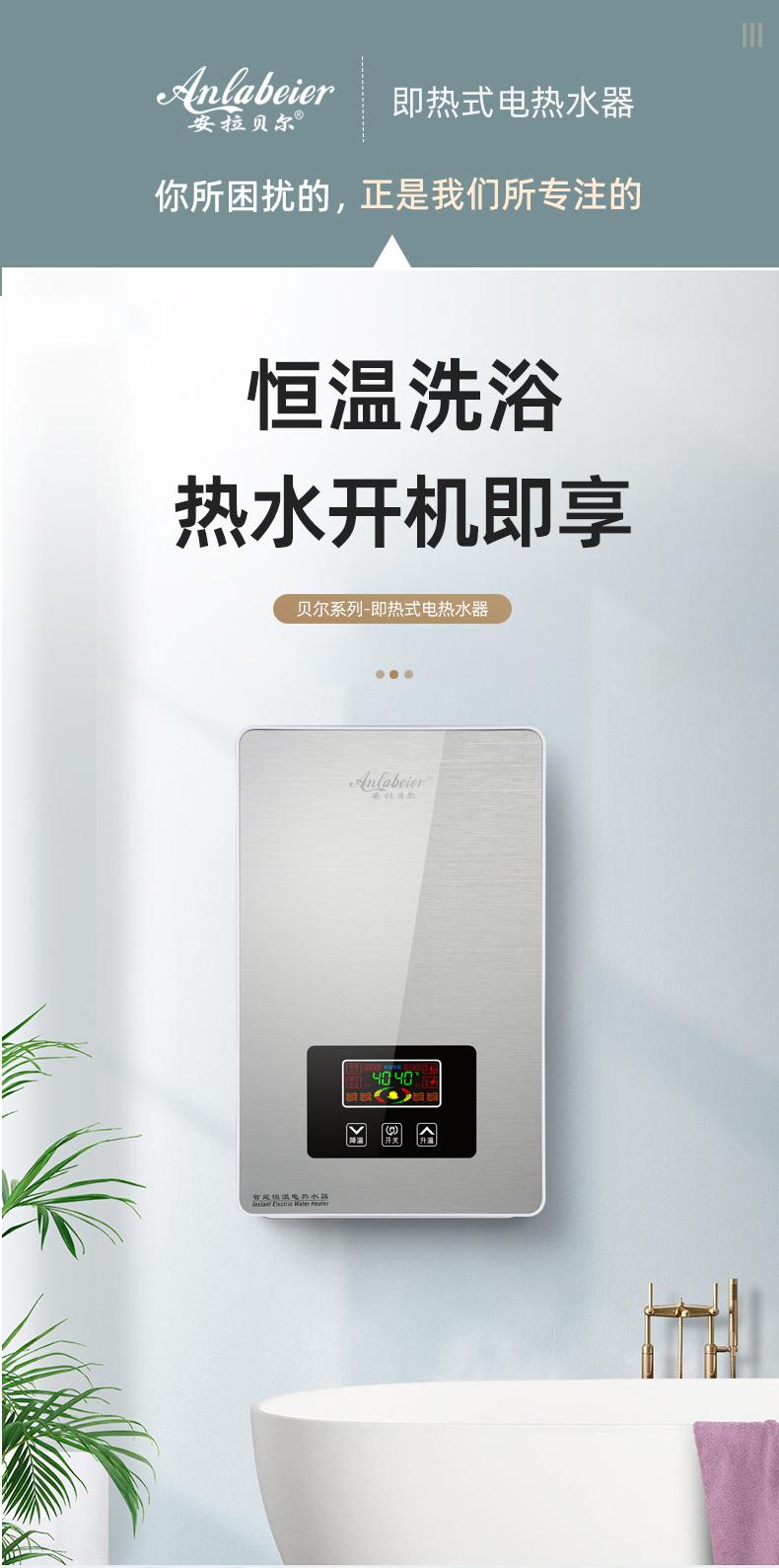 智能变频:部分中高端机型可根据进水温度、水流量自动调节功率,避免过度加热,进一步节能。安拉贝尔即热式电热水器采用了先进的变频恒温智能芯片,能实时智能调节水温,拒绝忽冷忽热。
