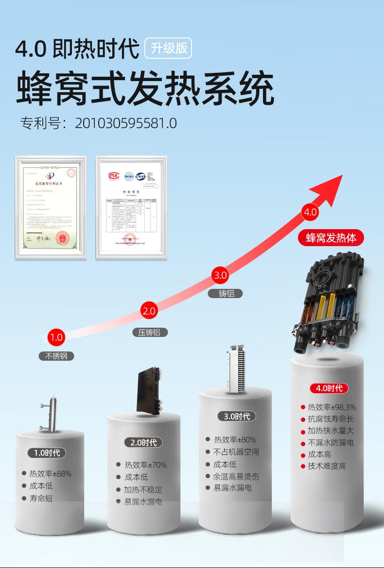 提高热效率:普通电阻加热效率约80%,而像安拉贝尔即热式电热水器采用了先进的3D蜂窝式发热体加热,该技术热效率可达98.3%左右。