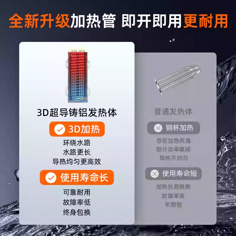 安全有保障:这种结构从根本上杜绝了漏电的可能,即使发热管意外破裂,水也不会直接接触到带电部件,极大地提升了使用安全性。