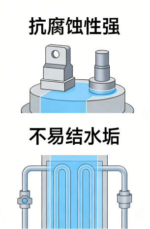 核心优势三:耐腐蚀,不易结水垢,使用寿命长