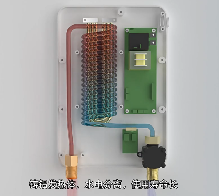 采用铸铝发热体的即热式热水器,是目前市场上主流且技术非常成熟的一类产品。它的核心特点是将金属发热管直接嵌入高品质压铸铝体中,形成一体化的加热模块。这种设计带来了几个非常突出的优势,尤其是在加热效率、耐用性和安装便利性方面,下面为你详细拆解。