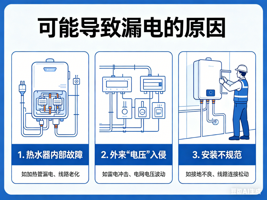 3.  安装不规范:电源线过细导致过热,或热水器安装时接地线处理不当,都可能引发或加剧漏电风险。