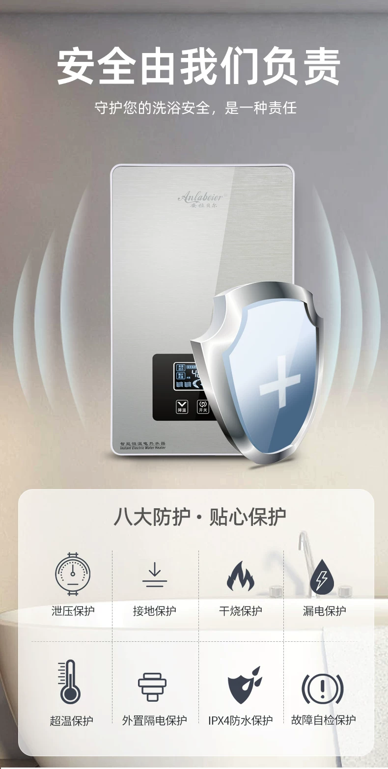 正规品牌的即热式热水器在设计上已有多重安全“防火墙”,只要安装规范,就能把漏电风险降到极低: