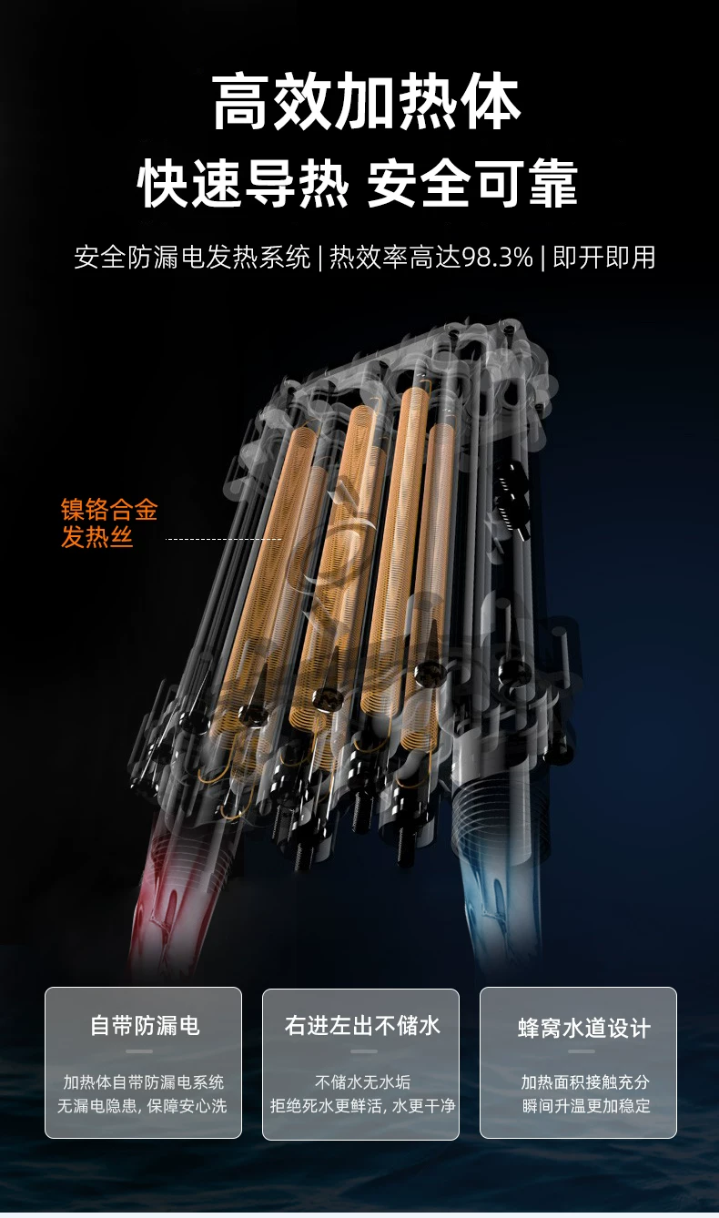 一、水电分离:这是核心设计。加热元件与水流被绝缘层隔离,从物理上杜绝了水直接接触电流的可能。